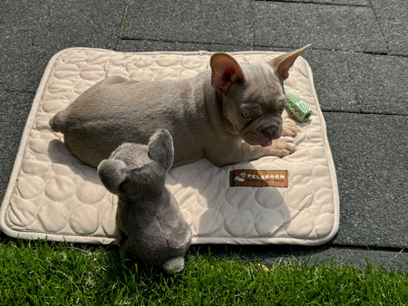 ''Onze Dozer is 9,5 weken jong en nu al dol op het koelmatje van Pelsbarn!"